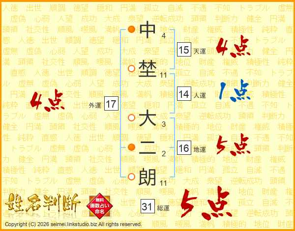 中埜大二朗さんの総運は31画の5点!