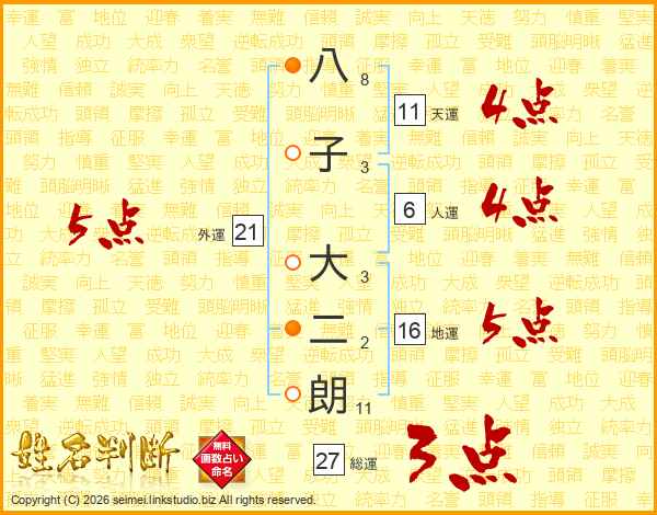 八子大二朗さんの総運は27画の3点!