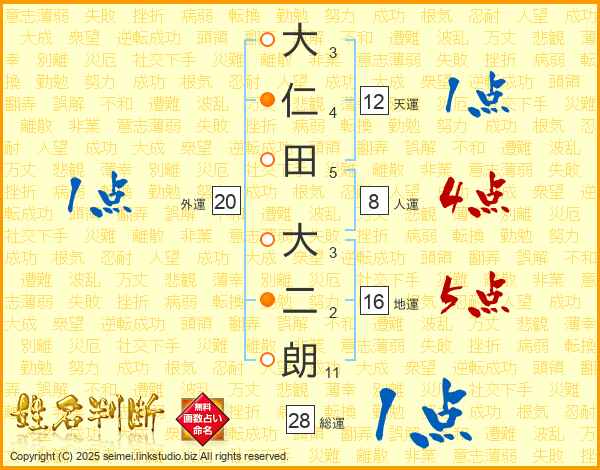 大仁田大二朗さんの総運は28画の1点!