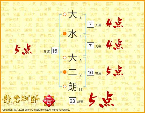 大水大二朗さんの総運は23画の5点!