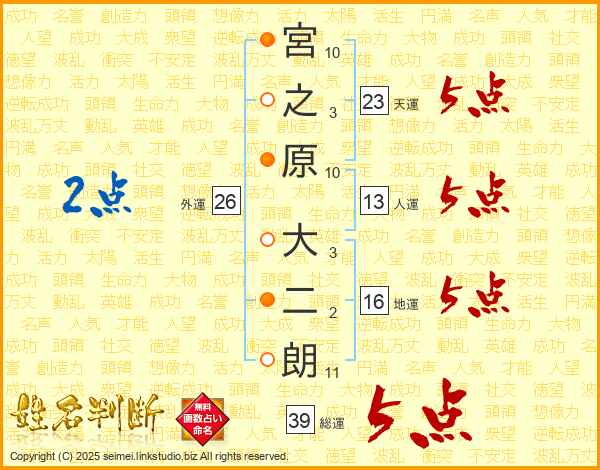 宮之原大二朗さんの天運は23画の5点!