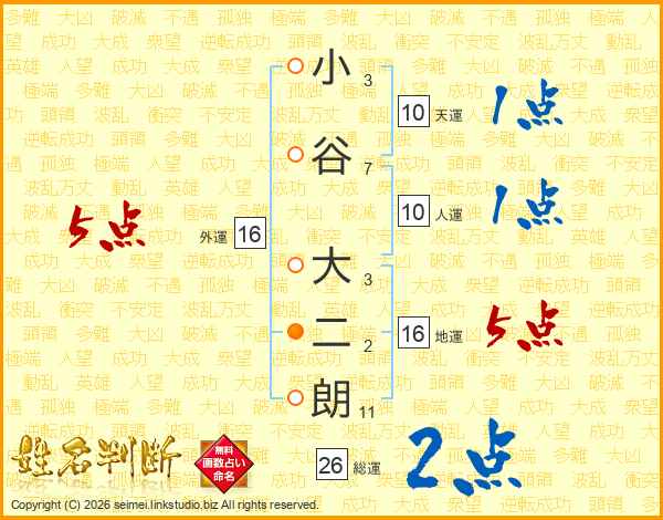 小谷大二朗さんの総運は26画の2点!