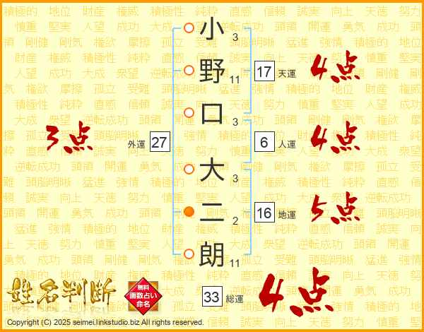 小野口大二朗さんの総運は33画の4点!