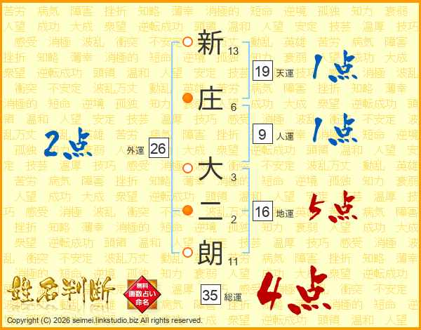 新庄大二朗さんの総運は35画の4点!