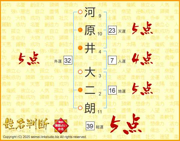 河原井大二朗さんの総運は39画の5点!