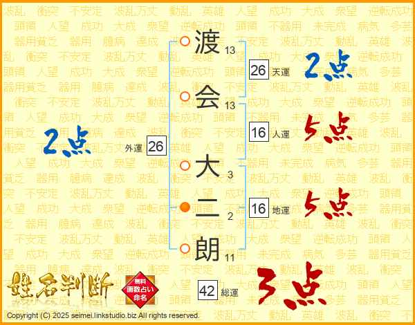 渡会大二朗さんの天運は26画の2点!
