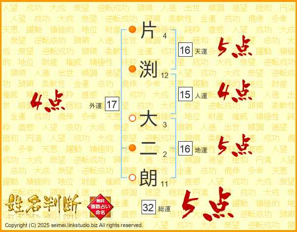 片渕大二朗さんの総運は32画の5点!