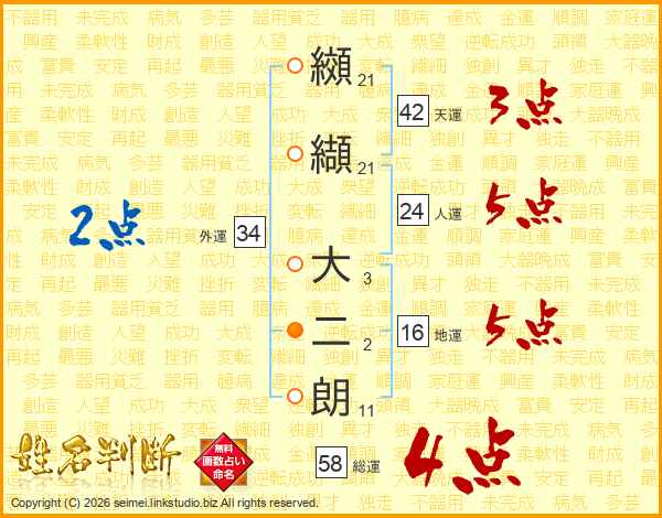 纐纈大二朗さんの総運は58画の4点!
