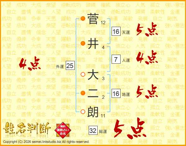 菅井大二朗さんの総運は32画の5点!