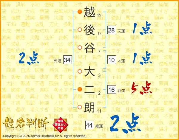 越後谷大二朗さんの地運は16画の5点!