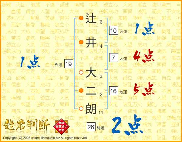 辻(6画)井(4画) 大(3画)二(2画)朗(11画)