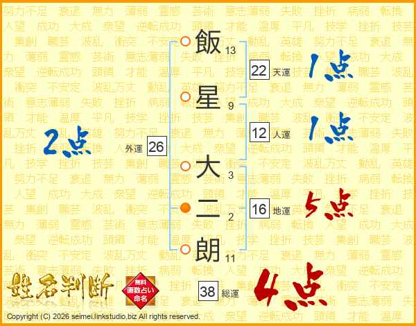 飯星大二朗さんの総運は38画の4点!