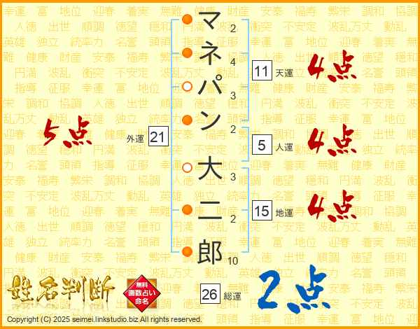 マネパン大二郎さんの外運は21画の5点!