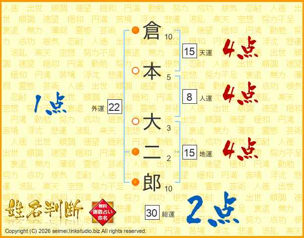 倉本大二郎さんの総運は30画の2点!
