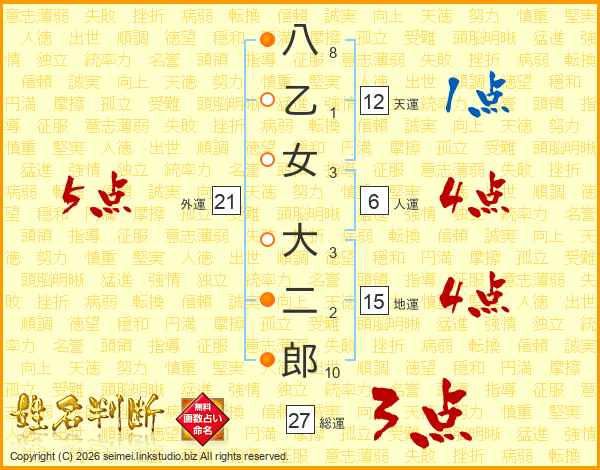 八乙女大二郎さんの総運は27画の3点!
