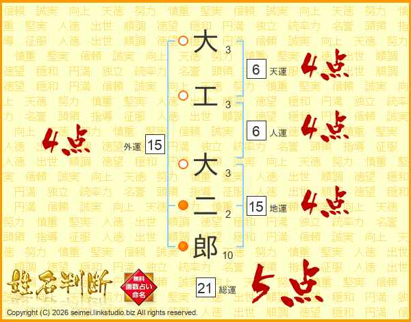 大工大二郎さんの総運は21画の5点!