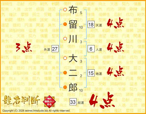 布留川大二郎さんの総運は33画の4点!