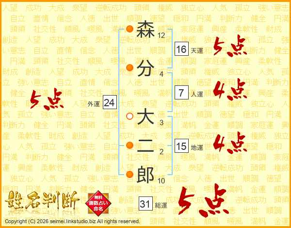 森分大二郎さんの総運は31画の5点!