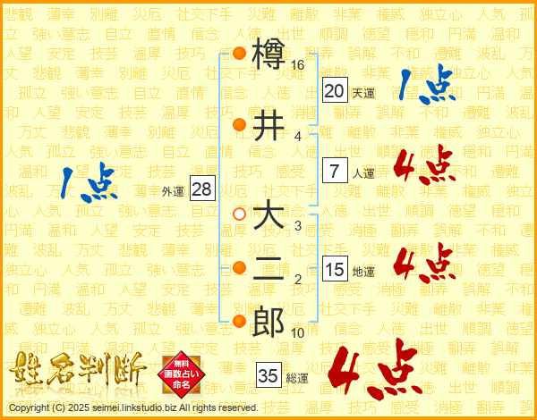 樽井大二郎さんの総運は35画の4点!