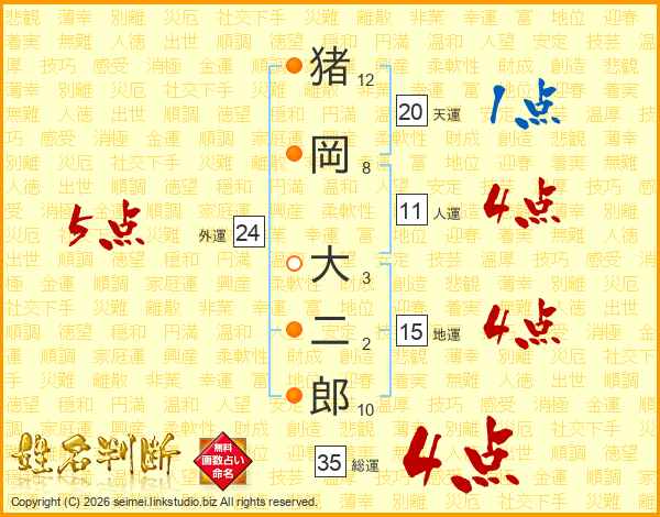 猪岡大二郎さんの総運は35画の4点!