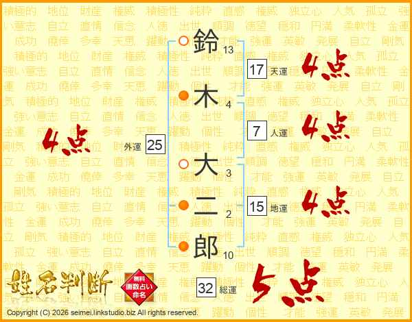 鈴木大二郎さんの総運は32画の5点!