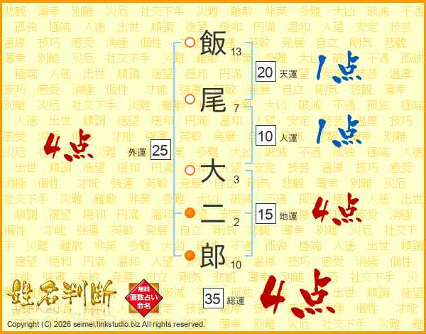 飯尾大二郎さんの総運は35画の4点!