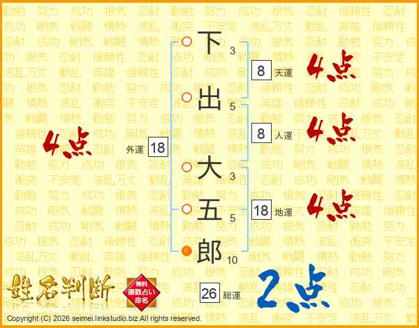 下出大五郎さんの総運は26画の2点!
