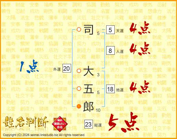 司大五郎さんの総運は23画の5点!