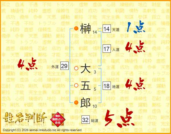 榊大五郎さんの総運は32画の5点!