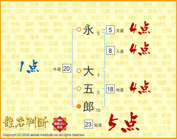 永大五郎さんの総運は23画の5点!