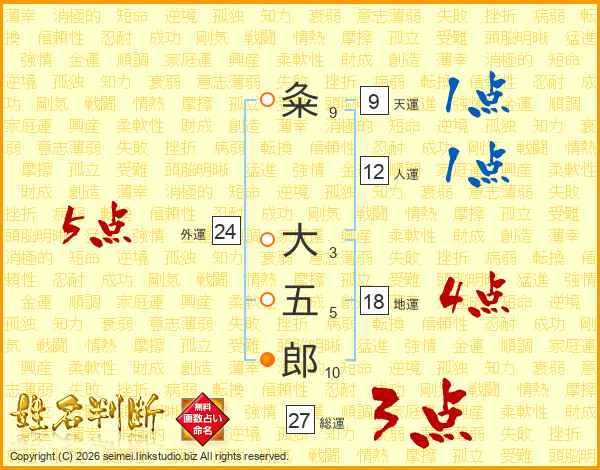 粂大五郎さんの人運は12画の1点!