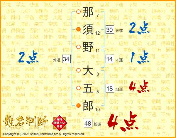 那須野大五郎さんの総運は48画の4点!
