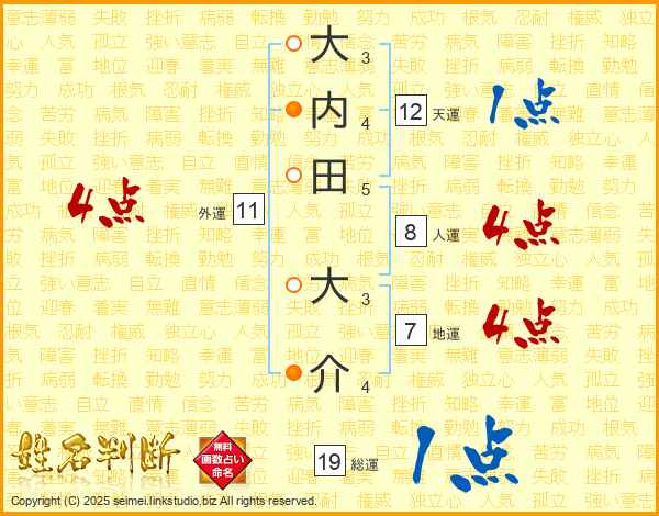 大(3画)内(4画)田(5画) 大(3画)介(4画)