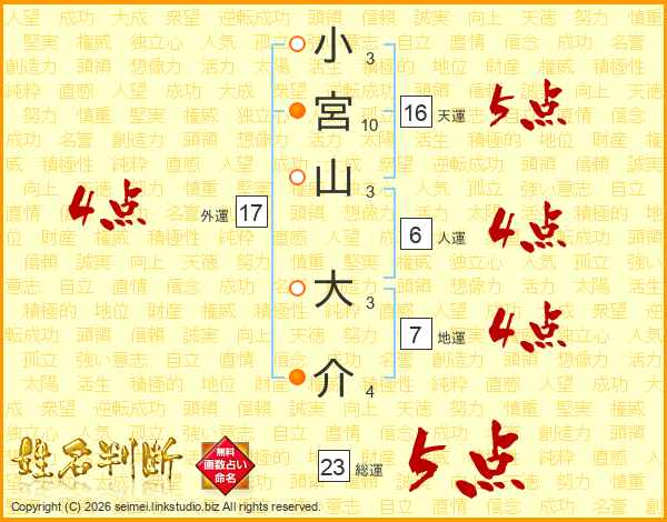 小(3画)宮(10画)山(3画) 大(3画)介(4画)