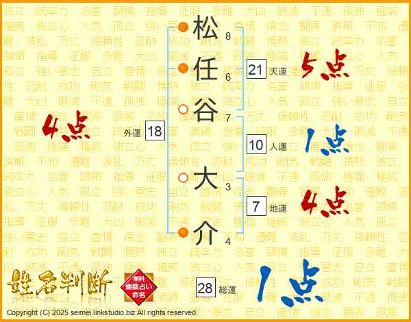 松(8画)任(6画)谷(7画) 大(3画)介(4画)