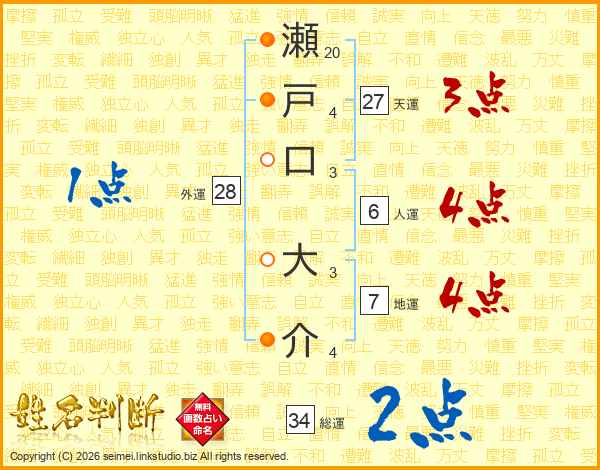 瀬戸口大介さんの天運は27画の3点!