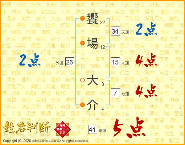 饗場大介さんの天運は34画の2点!