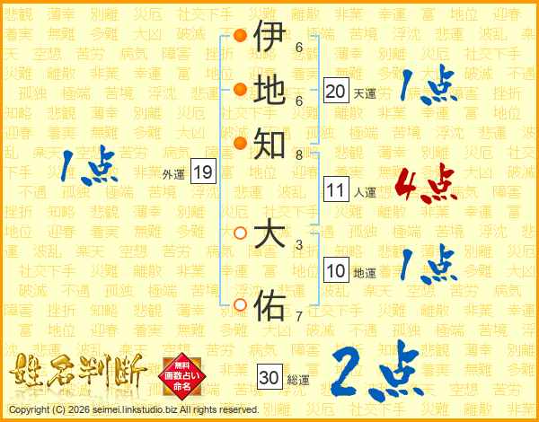 伊地知大佑さんの総運は30画の2点!
