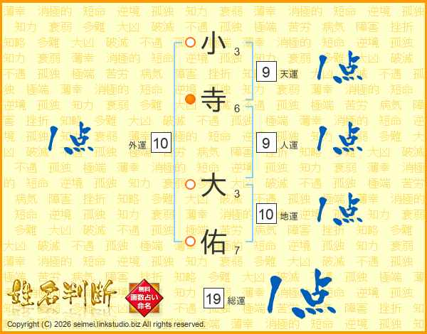 小寺大佑さんの総運は19画の1点!