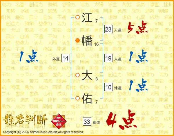 江幡大佑さんの総運は33画の4点!