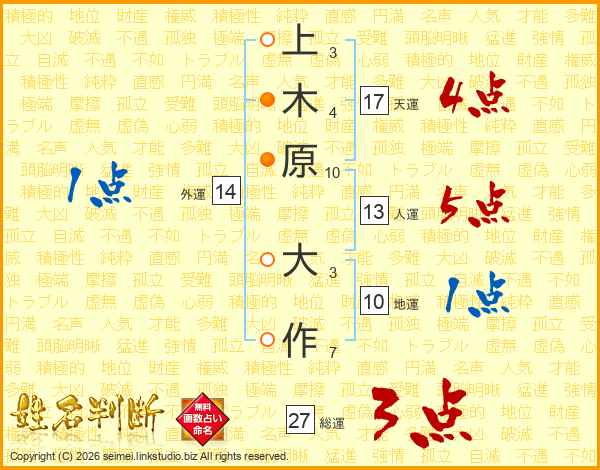 上(3画)木(4画)原(10画) 大(3画)作(7画)