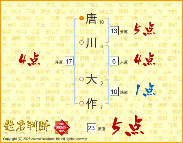 唐川大作さんの総運は23画の5点!