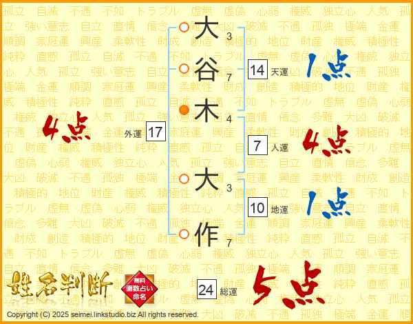 大(3画)谷(7画)木(4画) 大(3画)作(7画)