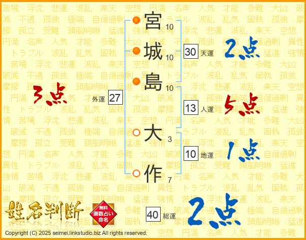 宮城島大作さんの天運は30画の2点!