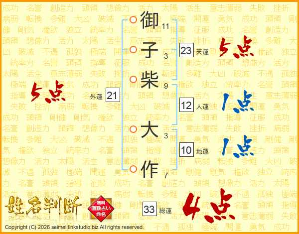 御子柴大作さんの総運は33画の4点!