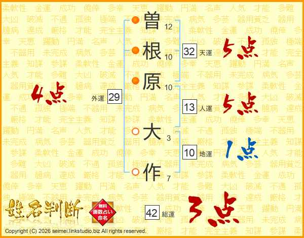 曽根原大作さんの人運は13画の5点!