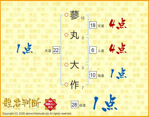 蓼丸大作さんの総運は28画の1点!