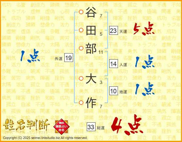 谷田部大作さんの総運は33画の4点!