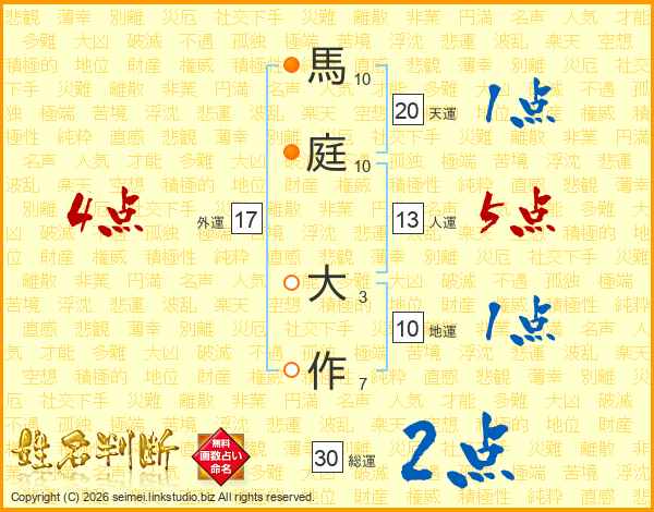 馬庭大作さんの総運は30画の2点!