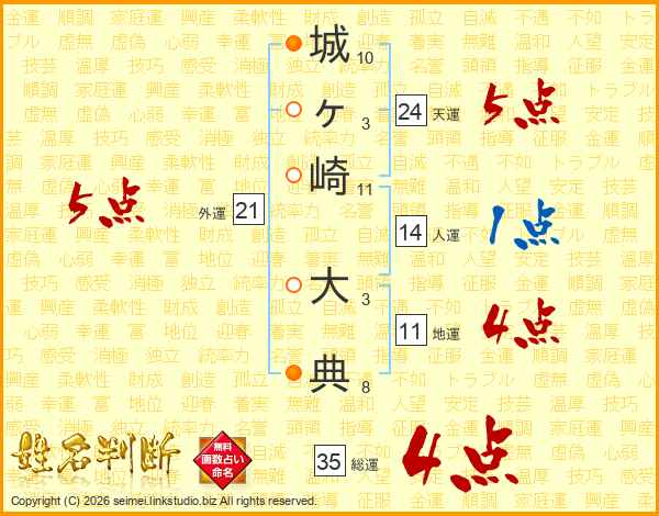 城ヶ崎大典さんの総運は35画の4点!